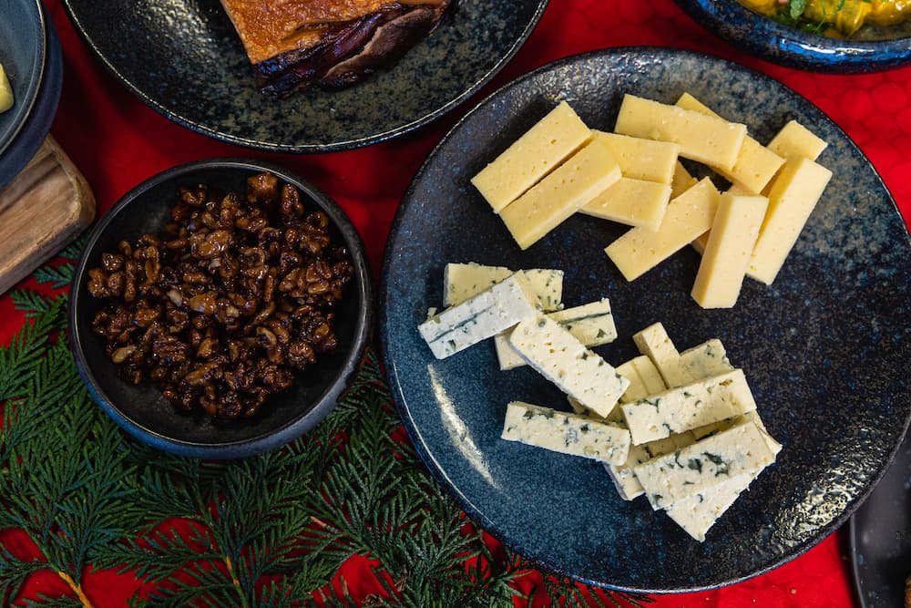 2 slags ost, modnet saltet ost og Dana Blue med portvinsmarineret svesker